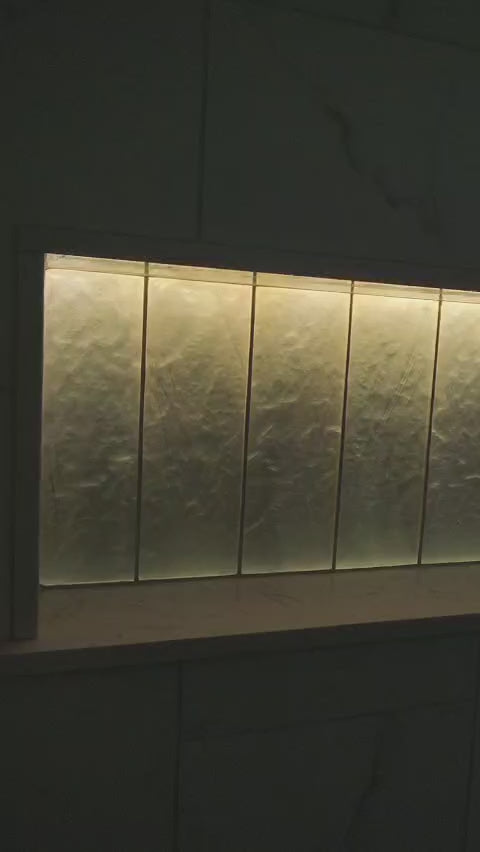 The Glowing Tile™ Soapbox Panel with fixed white lighting delivers soft, elegant illumination to your shower niche. Choose from warm, soft, or daylight white color temperatures to match your bathroom’s vibe. Each panel is built to your selected width and arrives ready to install.